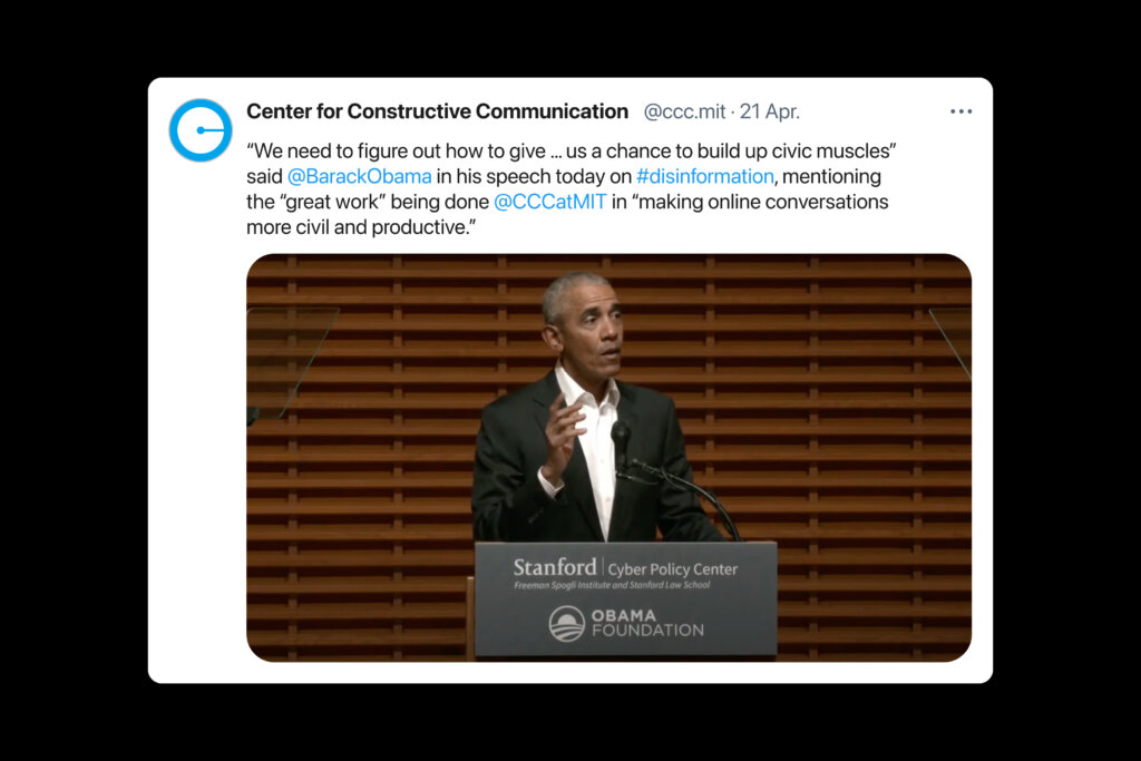 CCC has garnered national attention. Barack Obama said, “We need to figure out how to give … us a chance to build up civic muscles” in his speech on disinformation, mentioning the “great work” being done at CCC