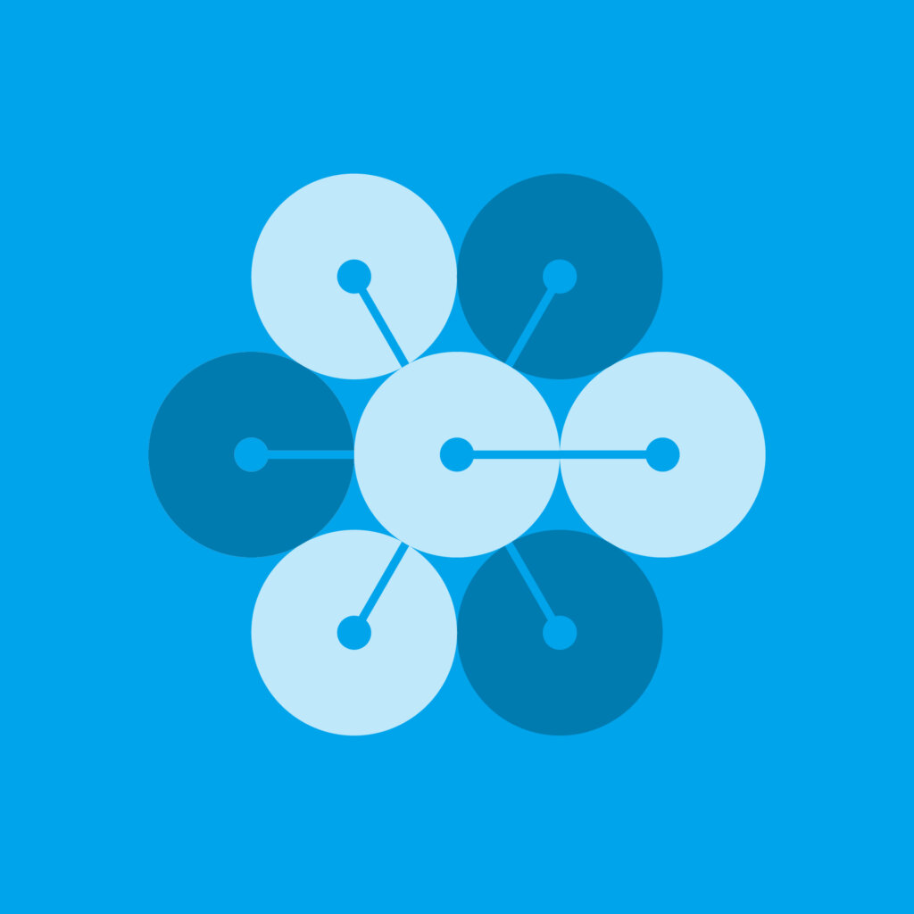 The symbol’s three rotated Cs, in conversation with one another—their negative space revealing a network. The wordmark is set in Neue Haas Grotesk, with custom modifications by Commercial Type