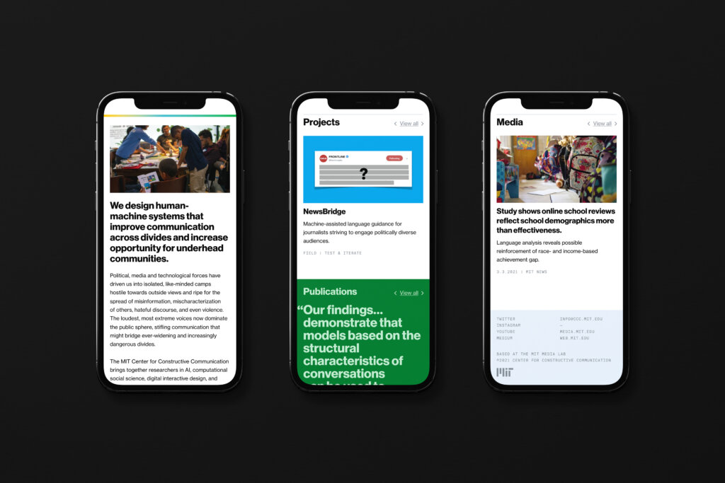 The Center for Constructive Communication (CCC) is a seminal lab and workshop housed at the MIT Media Lab, conducting exploratory research on how humans communicate in the age of social media and advanced social networks. Two connected sub-groups—technologists and humanists—work together to research, design, build and test new solutions. They also collaborate with experienced local organizations across the US, enabling them to launch impactful pilot programs across a range of different communities.