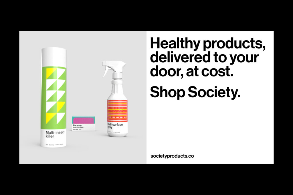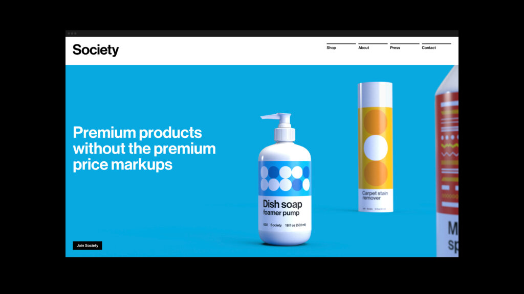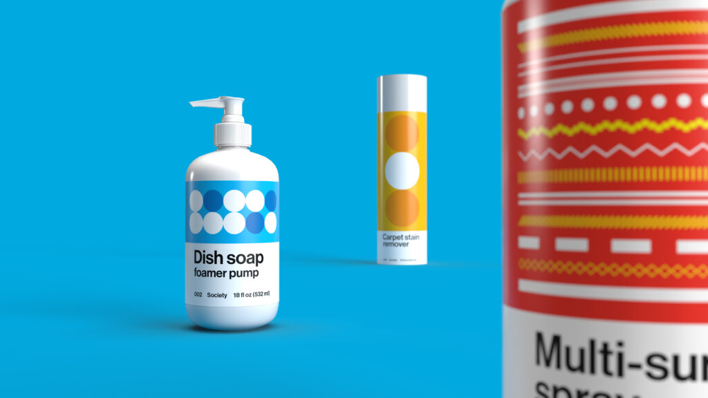Society is a direct-to-consumer subscription service for household cleaning supplies and home goods, selling everything from dog shampoo to dishwashing fluid: functional products that don’t traditionally enchant consumers. While not overtly glamorous, there’s a utilitarian beauty to these products we use daily.