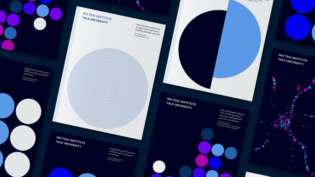 Yale University’s official blues combine with purples and pinks to form the color palette and communicate the institute’s personality: simultaneously serious, curious and optimistic